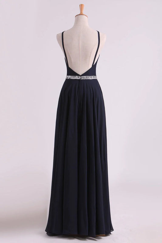 Party Dresses Spaghetti Straps Beaded Waistline Chiffon Open Back