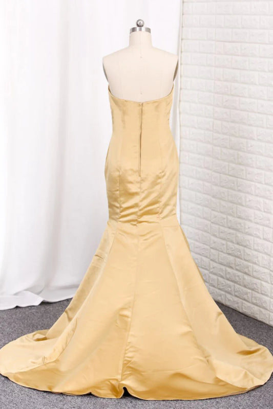 Plus Size Party Dresses Mermaid Strapless Satin Sweep Train