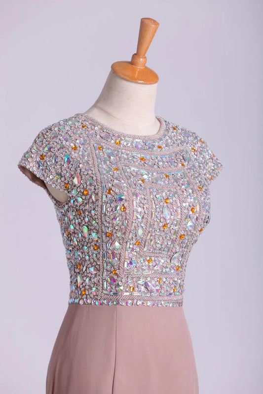 Scoop Party Dresses Beaded Bodice Chiffon Trumpet Sweep Train