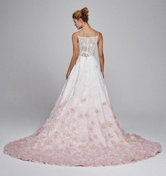 Pink Beads A Line V- Neck Sexy Tulle Long Sleeveless Beach Wedding Dresses Prom Dresses