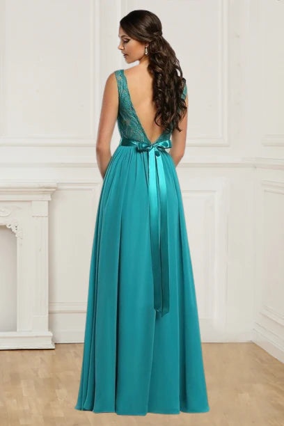 A Line Chiffon Straps V Neck Bridesmaid Dresses With Sash Floor Length