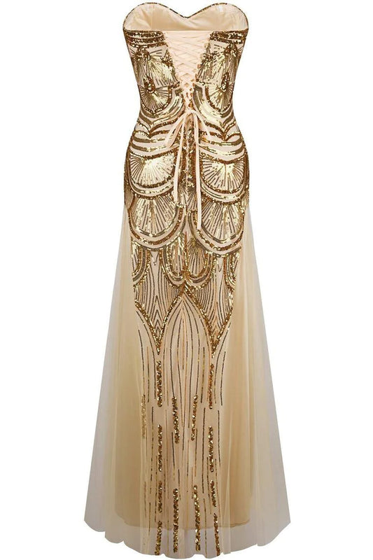 Unique Mermaid Gold Tulle Sequins Sweetheart Strapless Lace up Bridesmaid Dresses