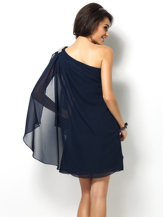 A-Line/Princess One-Shoulder Sleeveless Short Chiffon Bridesmaid Dresses