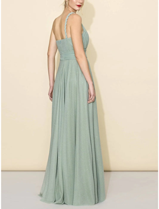 A-Line Bridesmaid Dress One Shoulder Sleeveless Elegant Floor Length Tulle with Split Front / Ruching