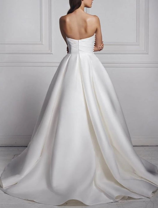 Hall Casual Wedding Dresses A-Line Sweetheart Strapless Sweep / Brush Train Satin Bridal Gowns With