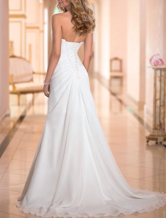 Hall Casual Wedding Dresses A-Line Sweetheart Strapless Sweep / Brush Train Chiffon Bridal Gowns With Crystals