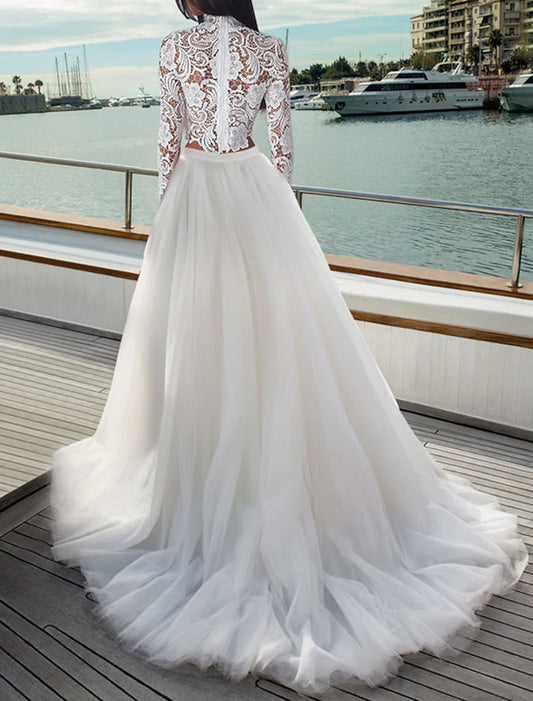 Boho Wedding Dresses Separates High Neck Long Sleeve Separates Lace Bridal Tops Bridal Gowns With Appliques