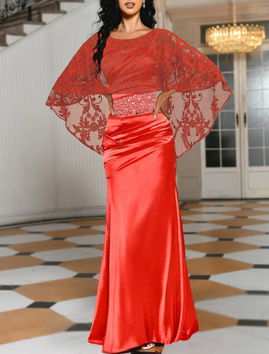 Mermaid / Trumpet Evening Gown Sparkle & Shine Dress Formal Wedding Guest Floor Length Sleeveless Jewel Neck Charmeuse with Ruched Sequin