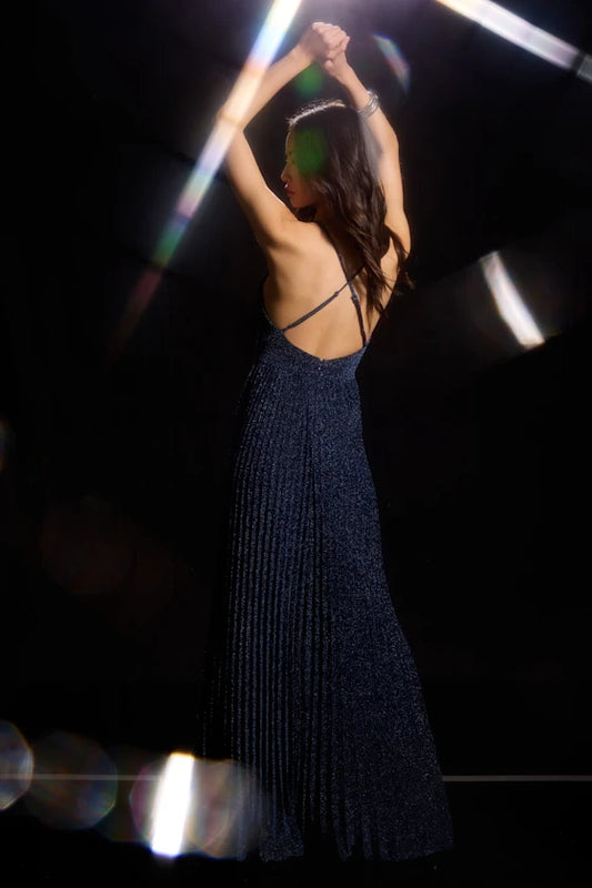 Gorgeous for women A-Line/Princess Plunging V-Neck Glitter Pleated Maxi Dress Prom Dress
