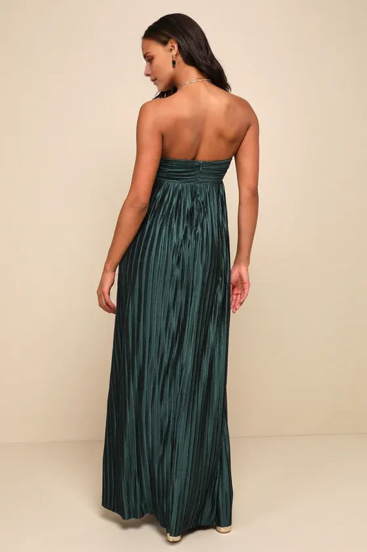 Gorgeous for women A-Line/Princess Strapless Sleeveless Ruched High-Slit Chiffon Maxi Dress Prom Dress