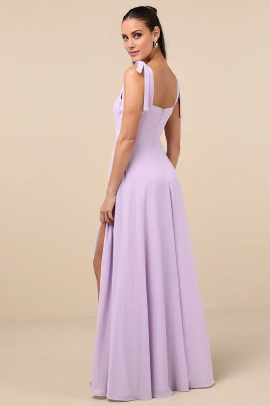 Gorgeous for women Square Neck Tie-Strap High-Slit Chiffon Maxi Dress Prom Dress