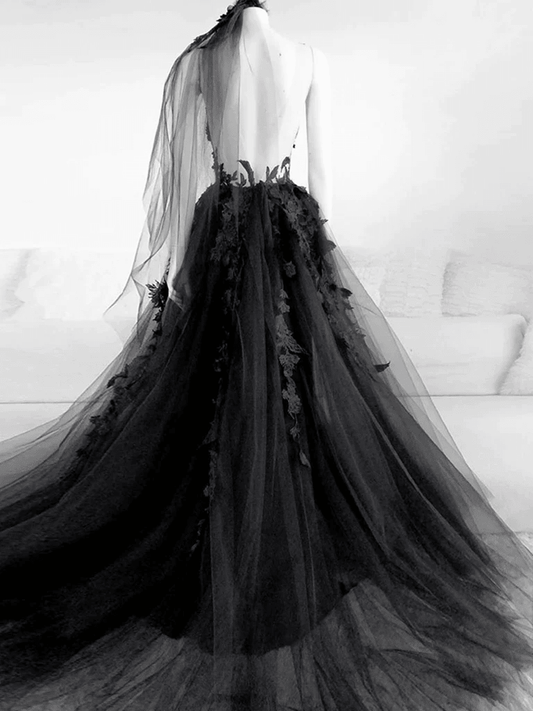 Beaira Black Tulle and Lace Long Prom Dresses Long Black Floral Formal Evening Dresses prom dresses shops