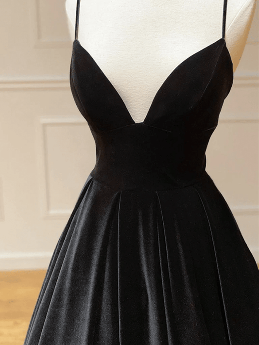 Beaira Black Velvet Long A-line Low Back Prom Dress Black V Neck Wedding Party Dress prom dresses shops