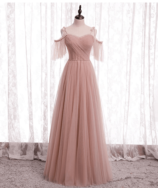 Beaira Pink Tulle Simple A-line Long Wedding Party Dresses Pink Formal Dresses prom dresses shops