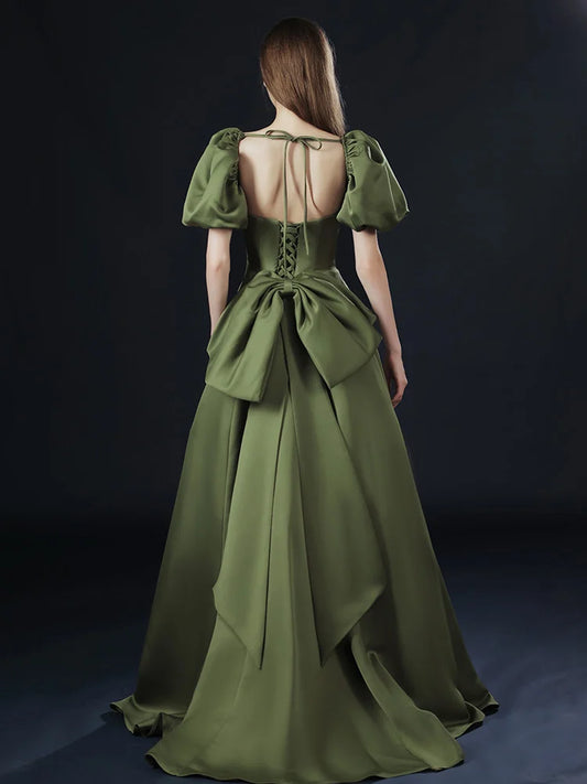 Beaira Dark Green Satin Short Sleeves Party Dress Dark Green Formal Dress prom dresses shops