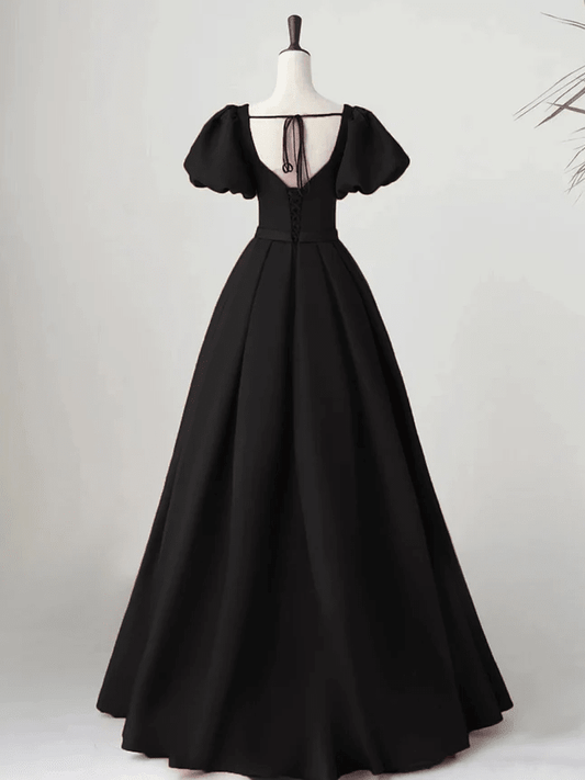 Beaira Black Satin Long Party Dress Prom Dress A-line Black Formal Dress prom dresses shops