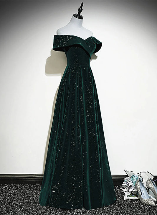 Beaira Green Velvet Off Shoulder Long Party Dress A-line Green Wedding Party Dress prom dresses shops