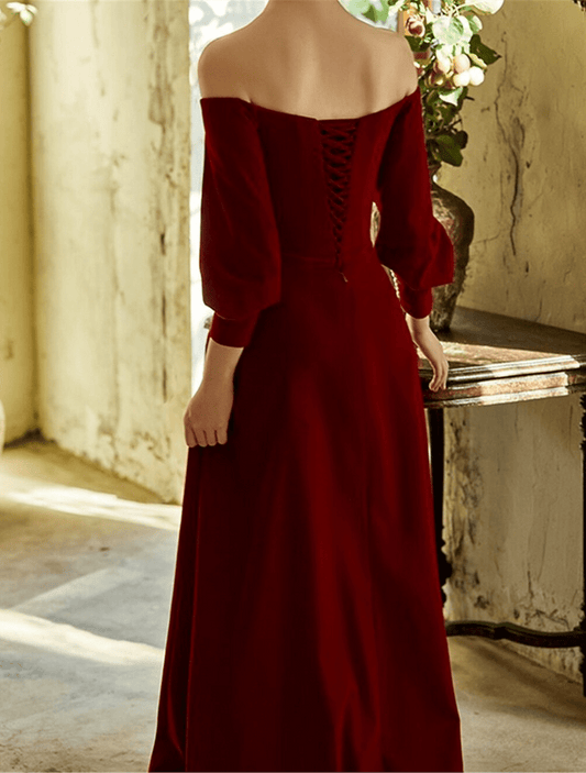 Beaira Red Elegant Off Shoulder Long Sleeves Party Dress Red Long Formal Dress Prom Dress prom dress shop