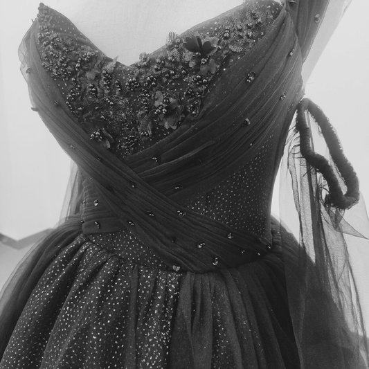 Beaira Black Shiny Tulle with Flowers Ball Gown Formal Dress Black Wedding Party Dress prom dress shop