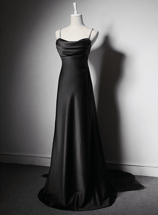 Beaira Black Satin Long Formal Dress Wedding Party Dress Black A-line Prom Dress prom dresses shops