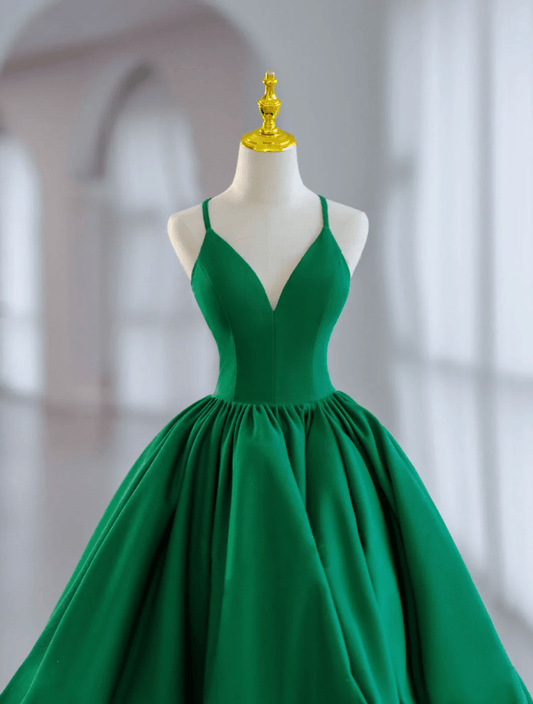 Beaira Green Satin Beaded Long Party Dress Green Satin Prom Dress Formal Dress stores with prom dresses