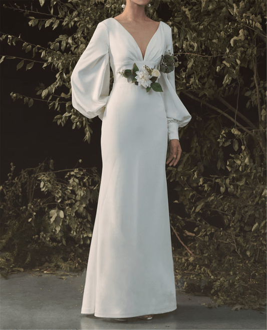 Beaira Elegant Deep V Bridal Prom Dress Backless Evening Dress Long Sleeve Bridal Gown prom dress shop