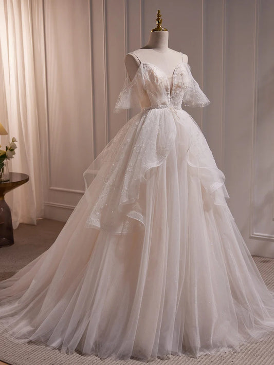 Beaira A-line Ivory Beaded Tulle Long Wedding Party Dress Ivory Tulle Floor Length Prom Dress stores with prom dresses