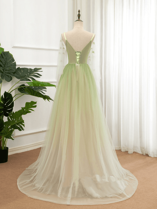 Beaira Green Tulle Gradient Long Party Dress Green Floor Length Formal Dress prom dresses stores