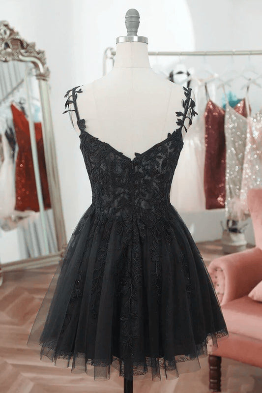Beaira Black Straps Tulle with Lace Short Party Dress Black Homecoming Dress prom shop dresses