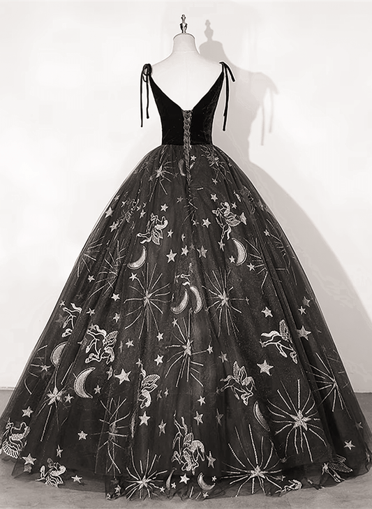 Beaira Pretty Black Ball Gown V-neckline Prom Dress Black Sweet 16 Dress prom dresses with long sleeves