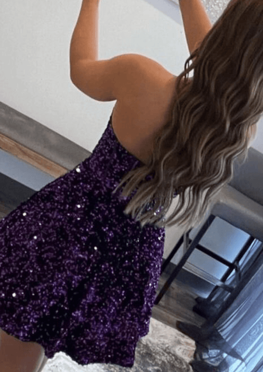 Beaira Purple Sequins Sweetheart Short Party Dress Purple Homecoming Dress prom dresses stores