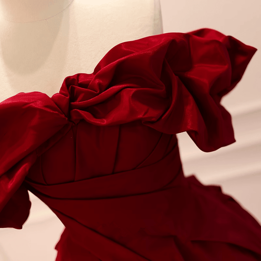 Beaira Lovely Satin Off Shoulder Long Party Dress Wine Red Sweetheart Prom Dress prom dresses with long sleeves