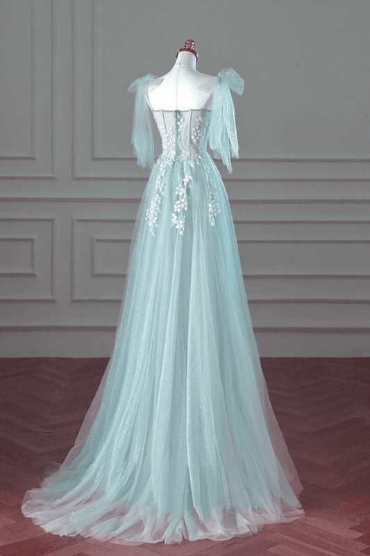 Beaira Lovely Mint Blue Tulle with Lace Applique Long Formal Dress Mint Blue Prom Dress prom dress with long sleeves