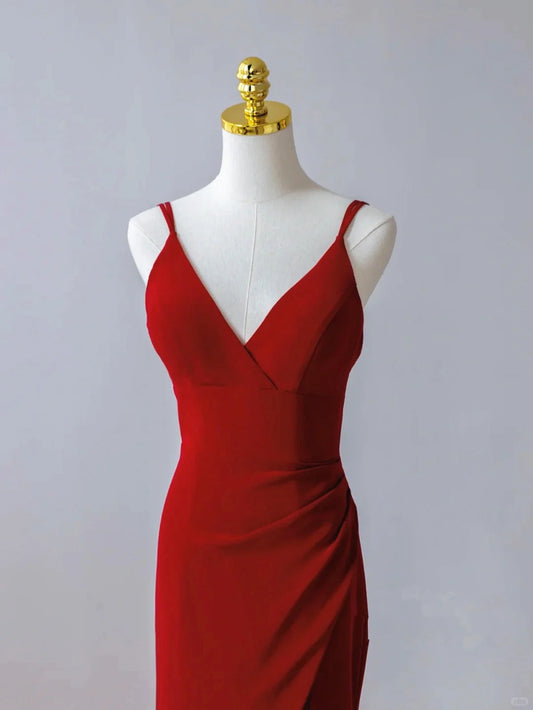 Beaira Red Mermaid Straps Long Prom Dress with Leg Slit Red Party Dress