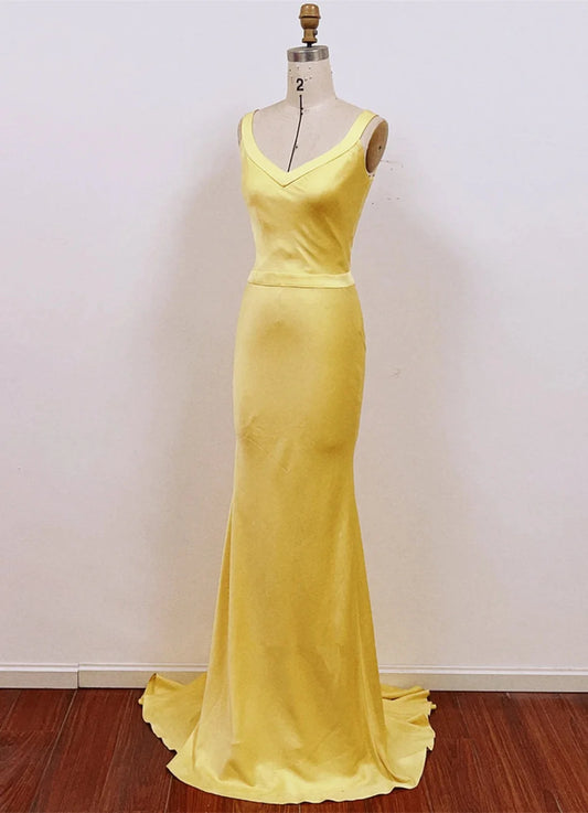 Beaira Chic Yellow Satin Mermaid Long Prom Dress Yellow Low Back Party Dress