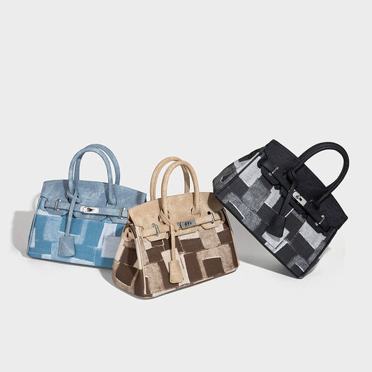 Beaira Small niche design splicing denim crossbody bowling bag summer new versatile Boston pillow bag