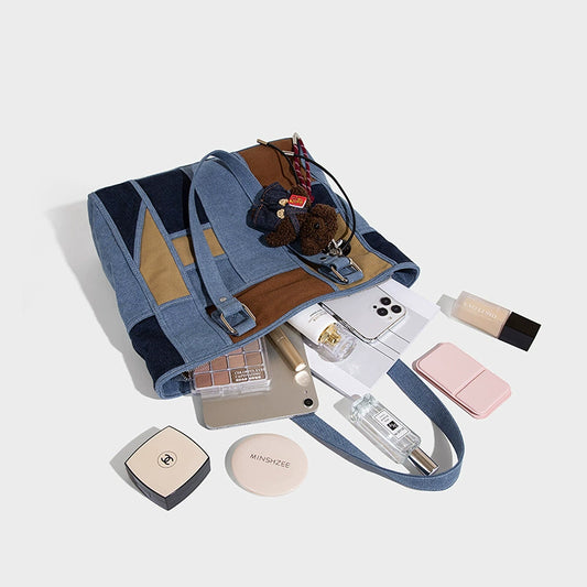 Beaira Niche high-end contrasting denim blue chain tote bag new small fragrance style fashionable single shoulder chain bag