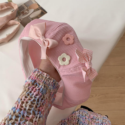 Beaira Women's Beret With Bow Flower - Japanese Cute Versatile Painter Hat, Slimming For Large Head, Dopamine Fashion Cap Gift For Her