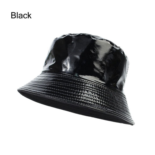 Beaira Faux Leather Bucket Hat Women Reversible PU Leather Sun Hat Fashion Autumn Waterproof Fisherman Hat Reversible Sun Bucket Hat
