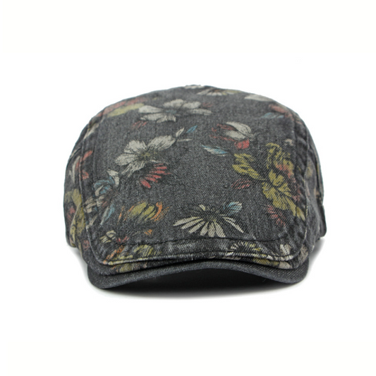 Beaira Ethnic Style Hat for Women Korean Style Fashion Washed Denim Beret British Retro Flower Peaked Cap Forward Hat for Men