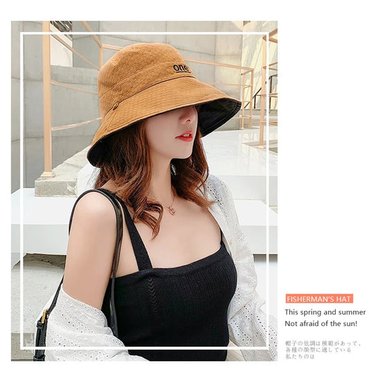 Beaira Fashion Letter Embroidery Reversible Design Cotton Bucket Hat For Women