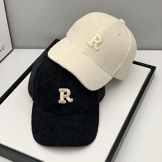 Beaira Vintage Letter “R”Embroidery Baseball Cap Solid Color Corduroy Sports Hat Lightweight Hats For Women Men