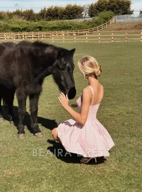 Beaira Elegant Cute Pink Deep V Polka Dot A-line Birthday Dress Homecoming Dress formal wear dresses