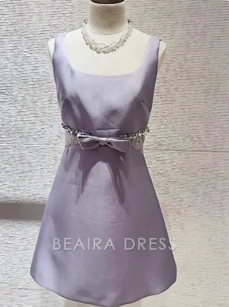 Beaira Elegant Sweet Purple Square Neck Bow Waist 17th Birthday Homecoming Dress hot sale for women