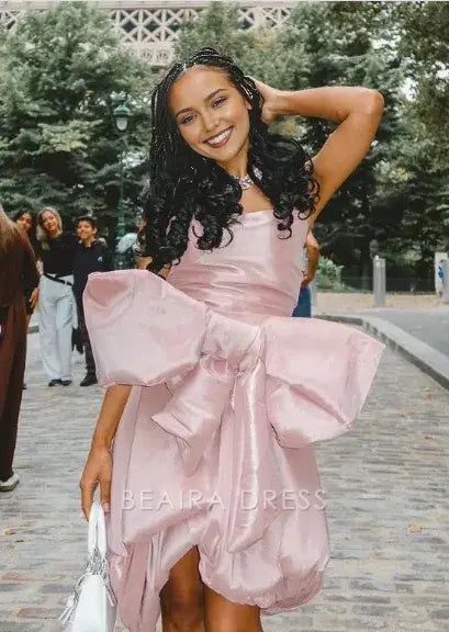Beaira Elegant Sweet Bow Satin Slim Birthday Short Skirt Homecoming Dress hot sale for women