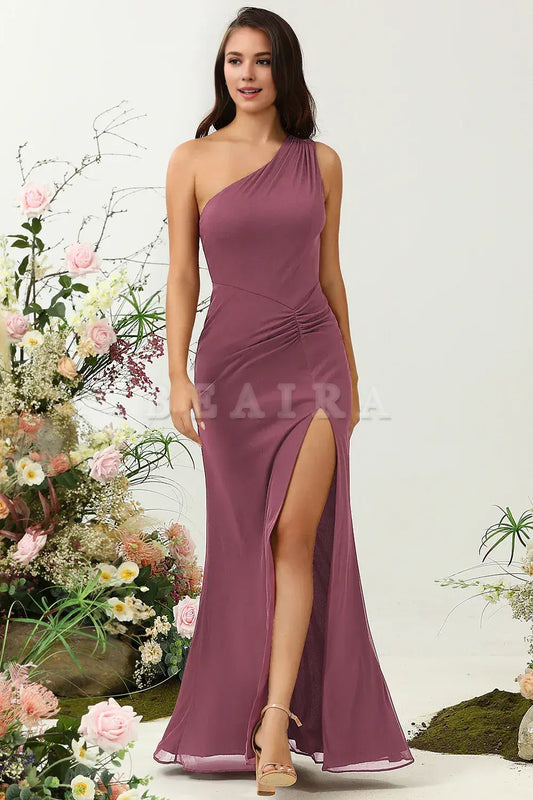 Beaira Desert Rose Mermaid One Shoulder Long Bridesmaid Dress with Slit Bridesmaid dress shop