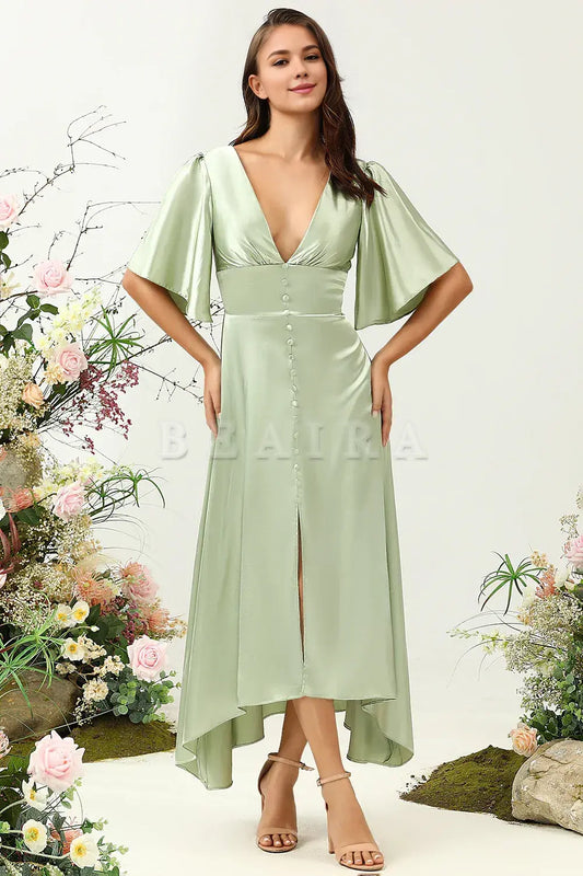 Beaira Dusty Sage A Line Deep V Neck Bridesmaid Dress with Half Sleeves Bridesmaid dress shop