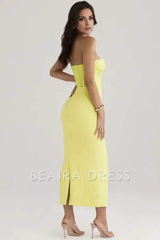 Beaira Elegant Serena Strapless Wrap Gown formal wear dresses - YELLOW