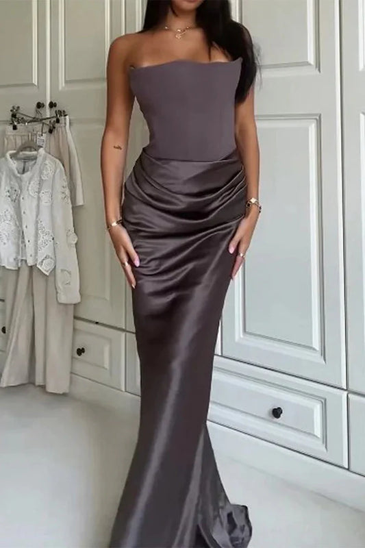 Beaira Elegant Sexy Prom Ruched Strapless Evening Dresses formal wear dresses - Brown