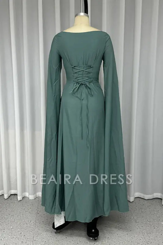 Beaira Elegant Sexy Slit Square Neck Evening Dresses formal wear dresses - Green